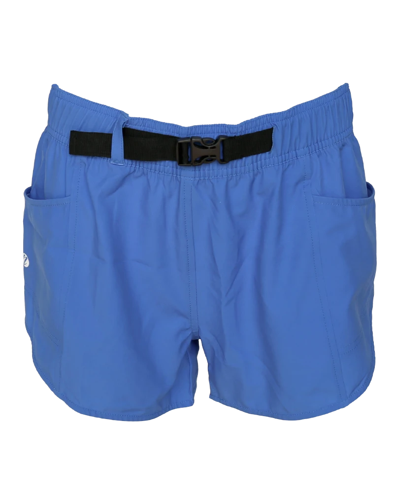 The perfect pair of shorts for everything from swimming to hiking and everything in between, our Nani Hybrid Explorer is ready for all your outdoor adventures! A bold Capri blue color with black built-in webbing belt strap and side release buckle.