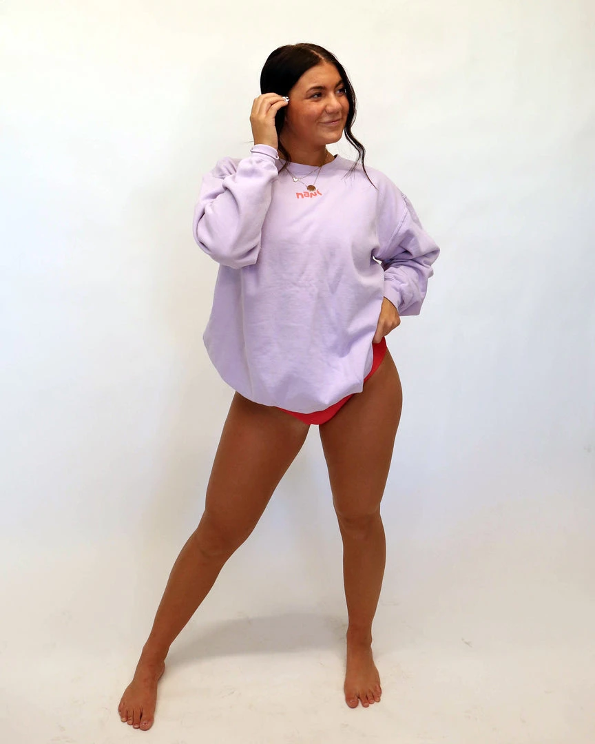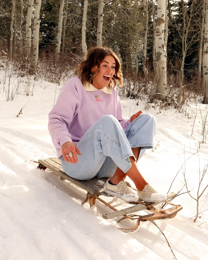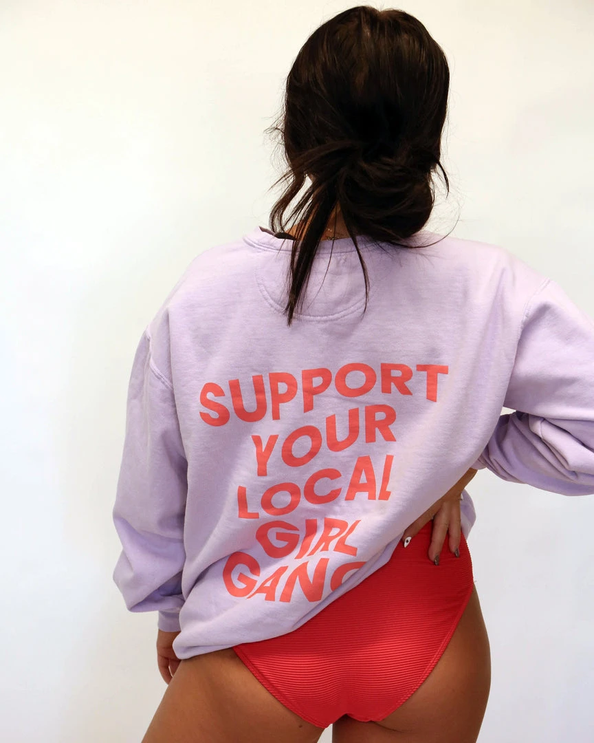 The Orchid “Support Your Local Girl Gang” crew neck sweatshirt is perfect for summer camping trips or winter snow adventures.ย