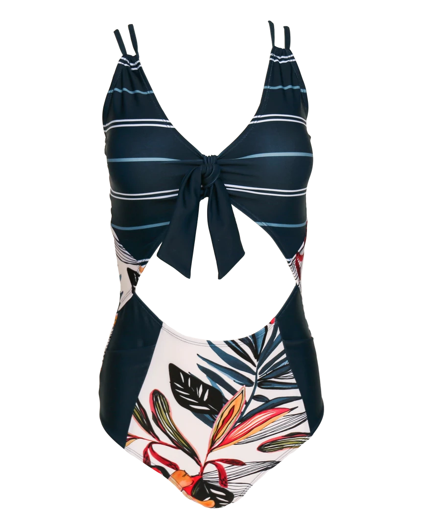 Stand out next time you hit the water in this bold mixed print fan favorite. The Rip Curve One Piece has adjustable straps to fit every height and wouldn’t be complete without the classic Nani pockets. Funky Antigua print on bottom with Navy trim and our Kai stripe print on top.