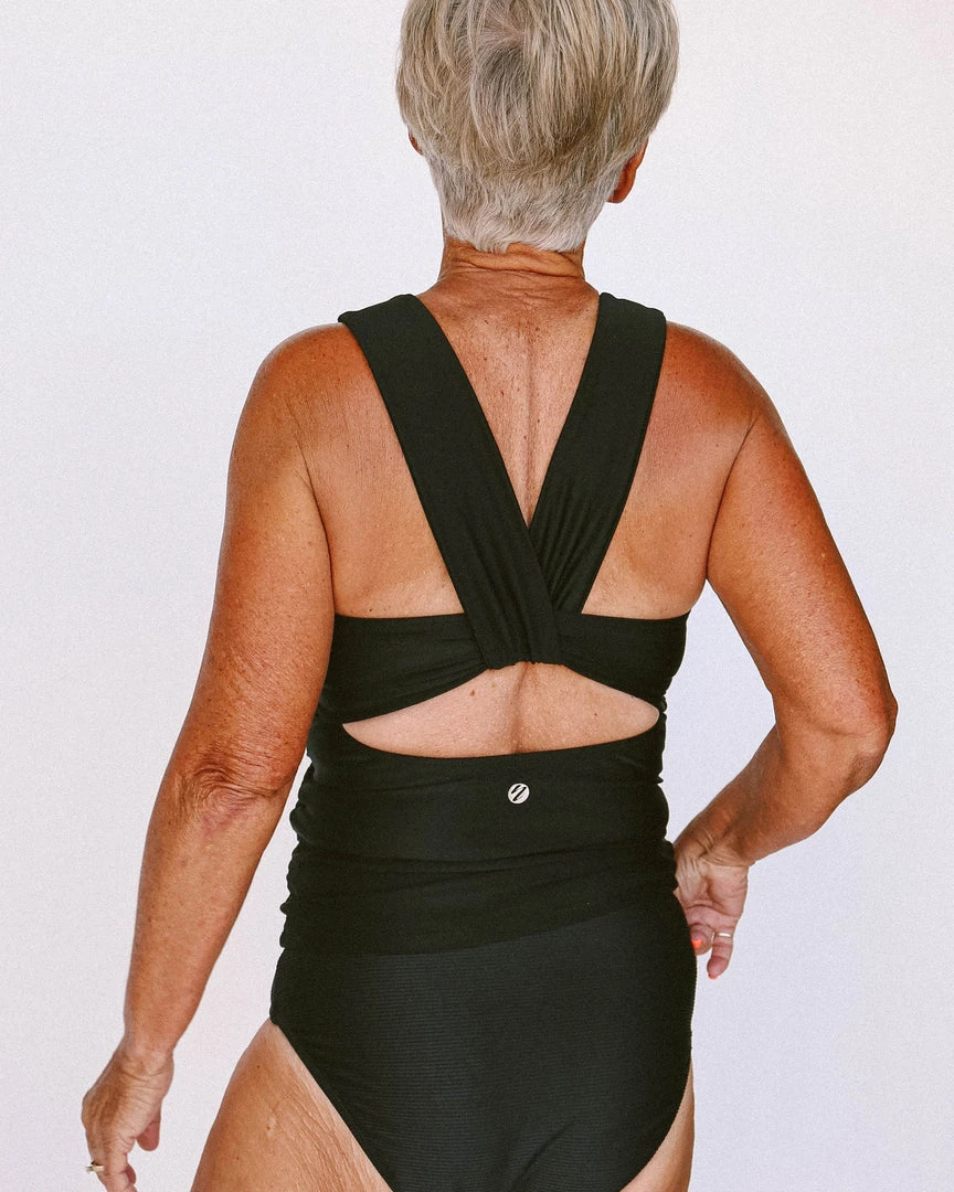 Designed for those who want a little more coverage, this beautiful swim top features a head-turning, unique V-shaped back that combines elevated style with a sporty design.