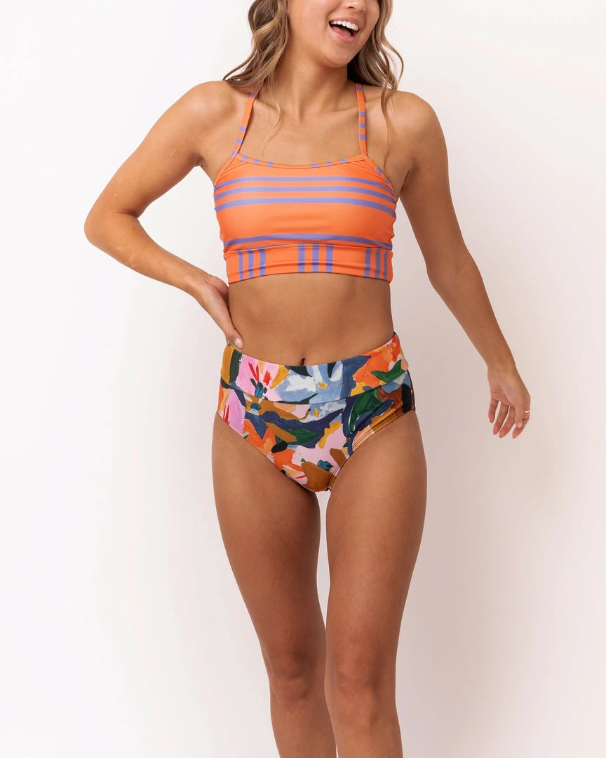 Comfortable AND supportive, the Shaka Bralette has multi-colored straps and just the right length to look good and feel good in and out of the water. Â