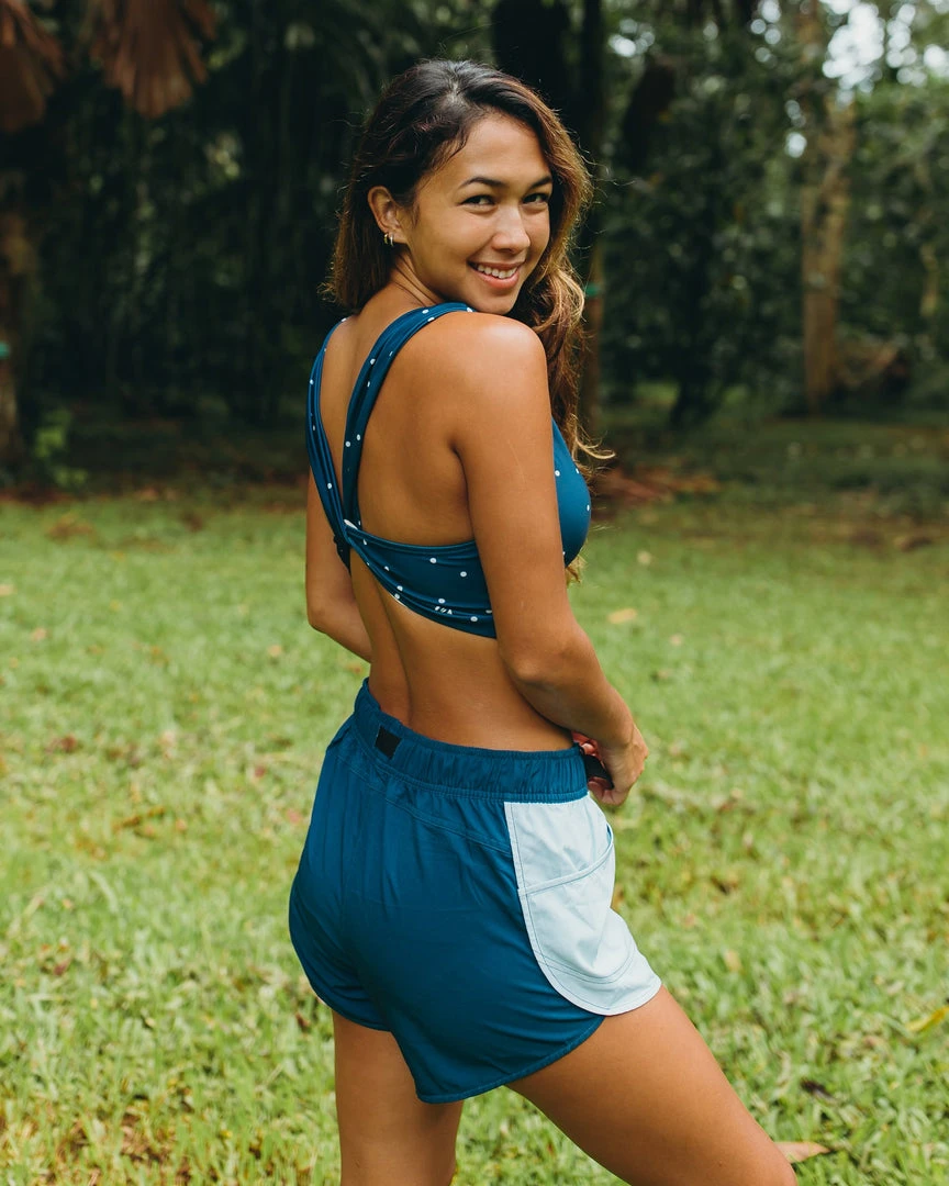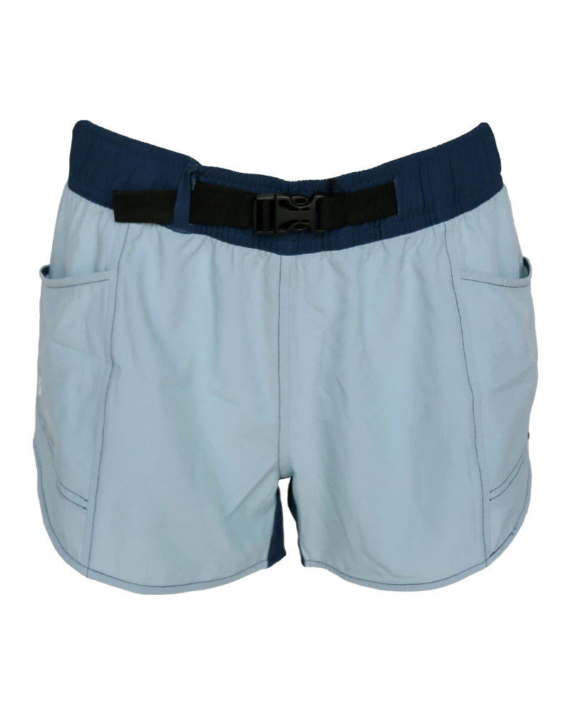The perfect pair of shorts for everything from swimming to hiking and everything in between, our Nani Hybrid Explorerย is ready for all your outdoor adventures! Solid Navy back and waistbandย with a lighter Illusion Blueย in front and a black built-inย webbing belt strapย and side release buckle.