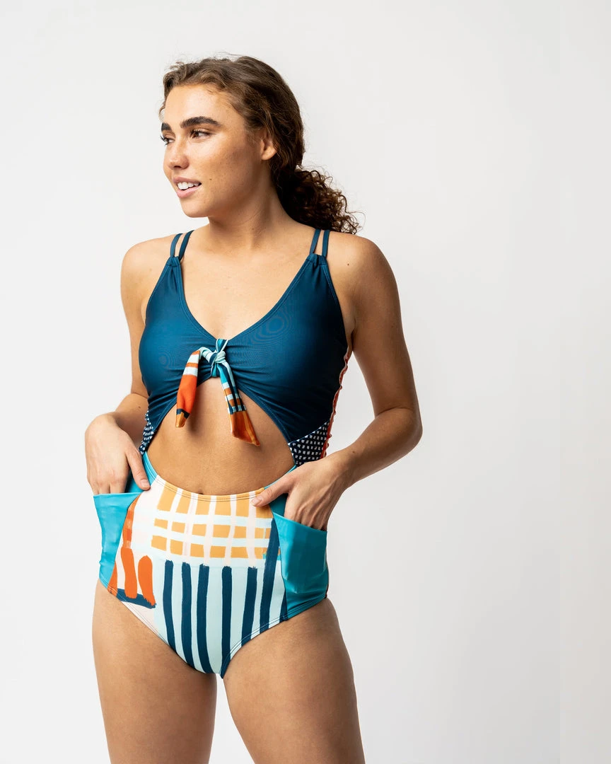 Stand out next time you hit the water in this bold mixed print fan favorite. The Ray High Tide One Piece has adjustable straps to fit every height and wouldn’t be complete without the classic Nani pockets.