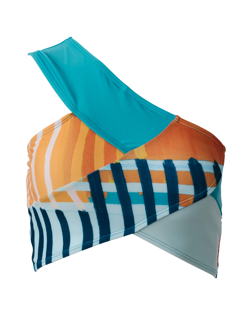 Looking for something NEW and DIFFERENT? This patchwork design is just what you have been waiting for! The one-shoulder, flattering fit keeps you covered and secure while showing off your style as you confidently dive into all your outdoor activities.Â