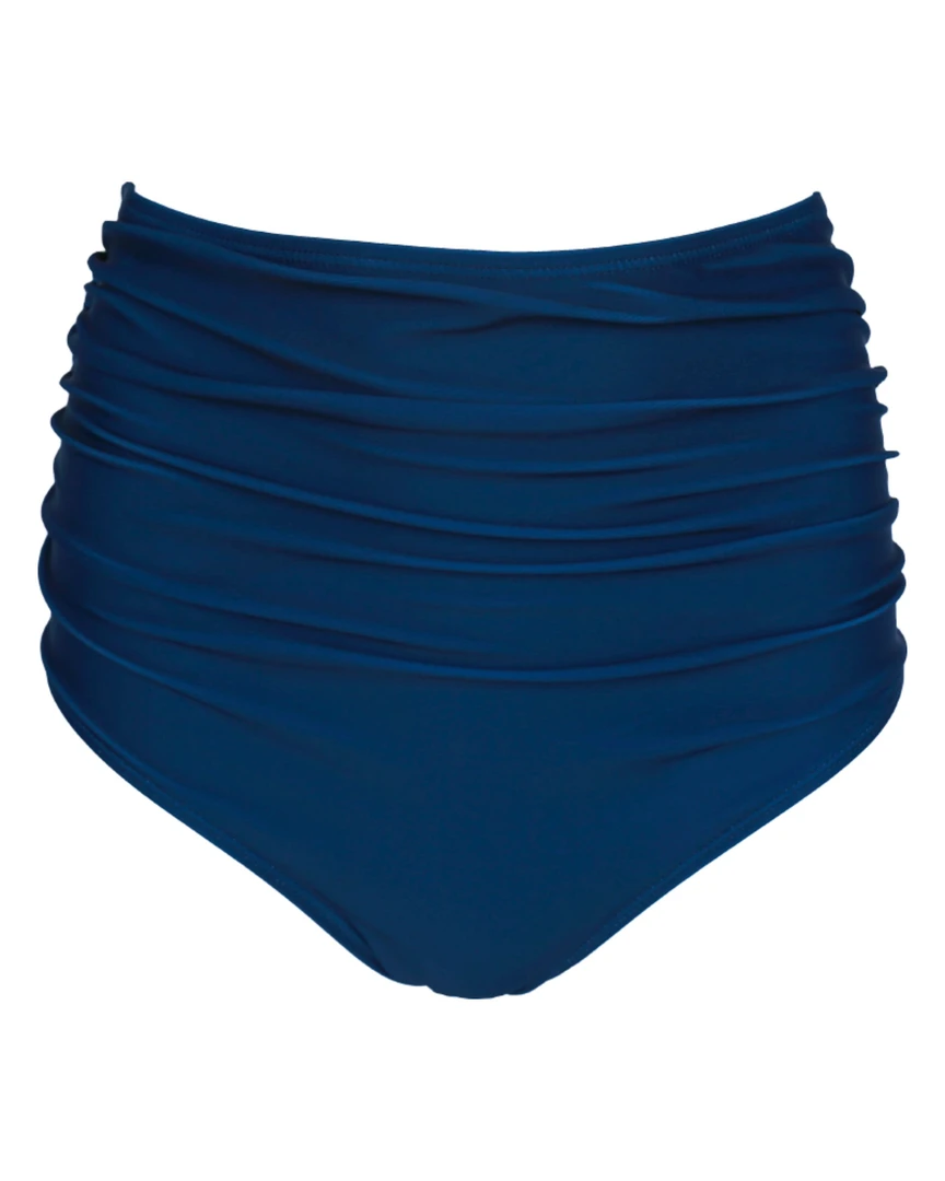 Designed to meet your many requests for a high-rise bottom, this is the one! The Nani High Rise Bottom is just the right height with just the right amount of ruching for a super flattering fit. Dive in or relax by the pool, we’ve got you covered! Solid Navy color.