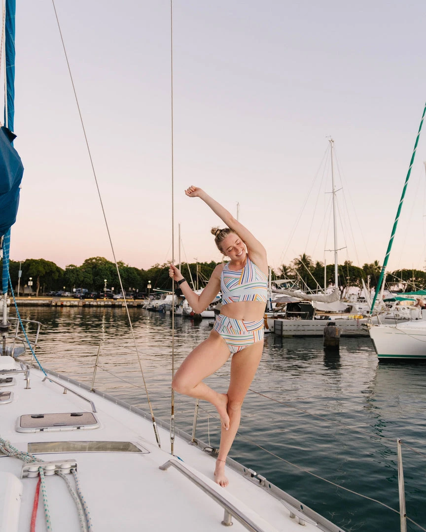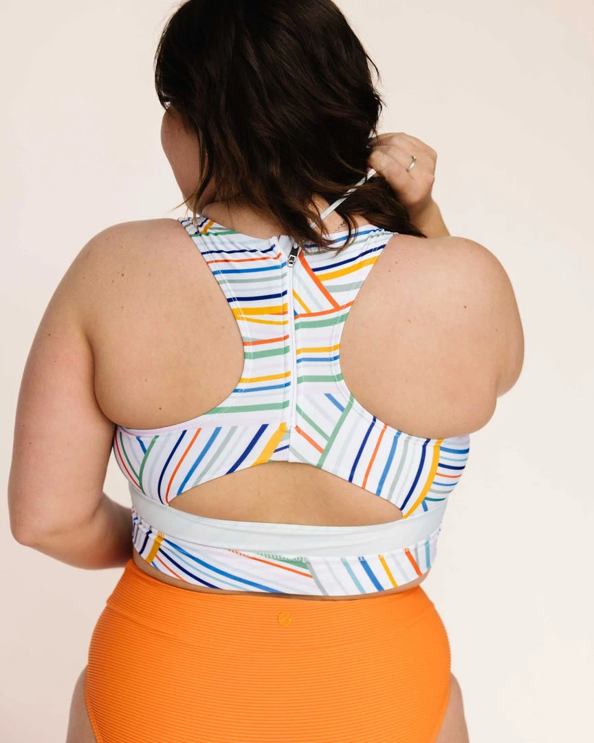 The Nani Cut Back Swim Crop offers the comfort and support of a favorite sports bra, designed as a hybrid for yoga class and all your outdoor adventures.